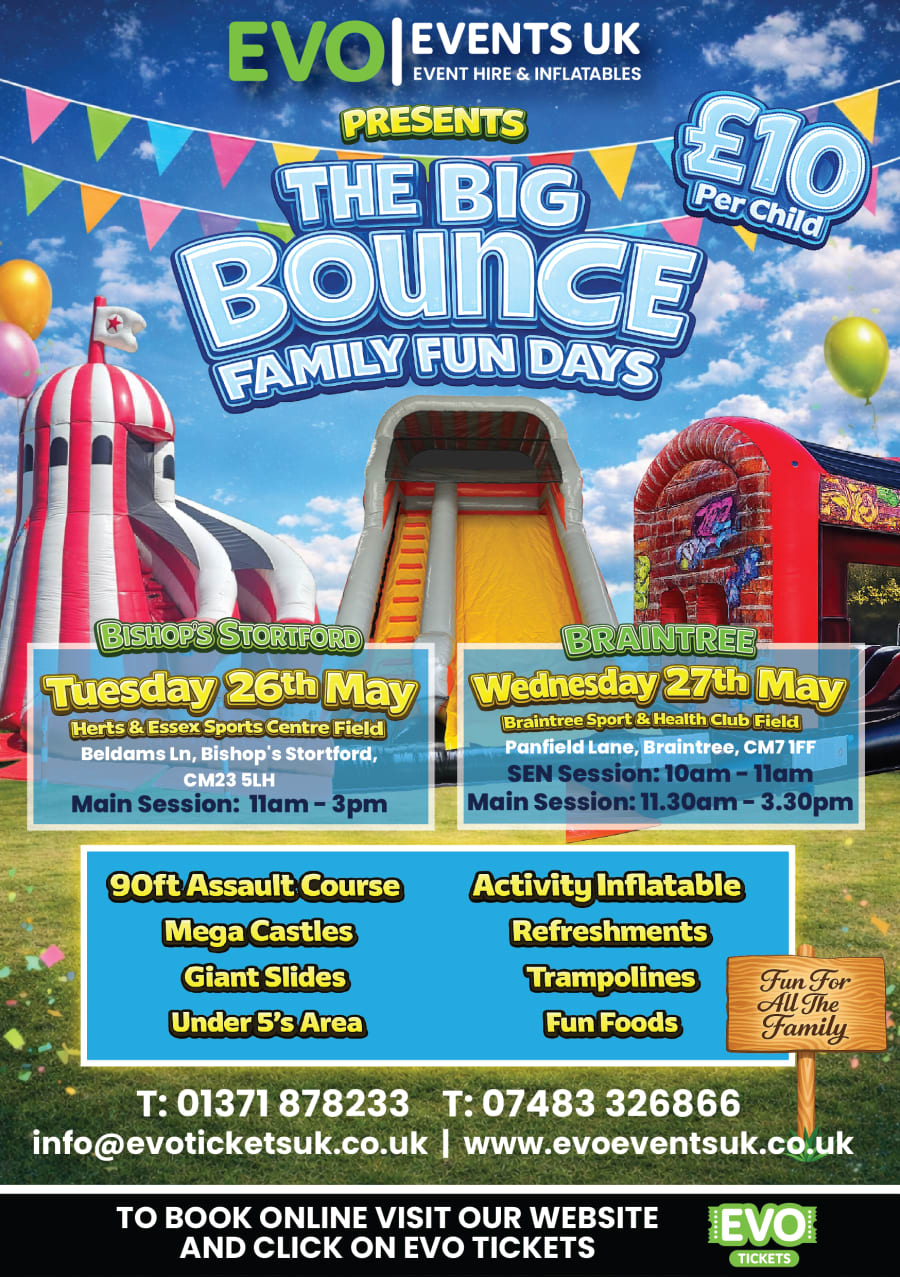 Perfect for the May halfterm calendar, this event is easy to get to, brilliant for burning off wiggles, and an absolute winner for birthday squads or last-minute plans. Whether you’re searching for "the big evo bounce" or curious about a high-energy afternoon in Braintree, this is your go-to holiday experience.